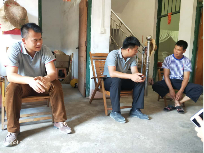 图1:总经理助理黄韦康向刘敏辉了解家属病情。