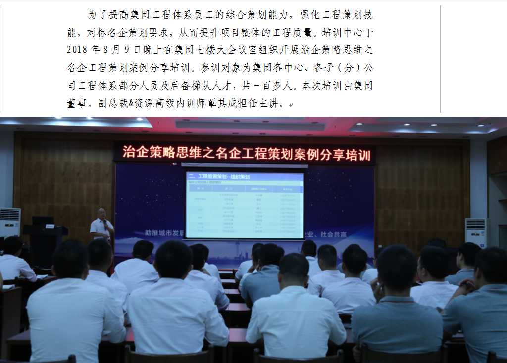 集团培训中心成功举办治企策略思维之名企工程策划案例分享培训