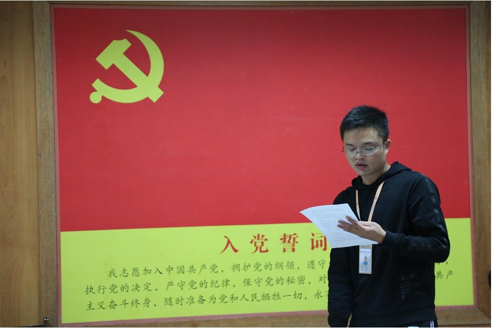 发展对象黄雄光向大会汇报对党的认识、入党动机等